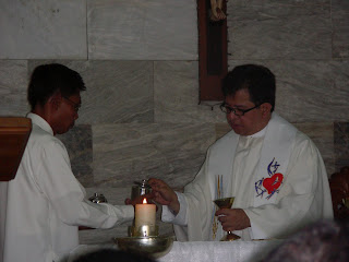 UST was also there. I requested the Psalterion choir to remind the people of the original language of the Church and the beauty of the Gregorian chant -- they sang in Latin (with one Responsorial psalm in Tagalog and two English songs for Communion). They were accompanied to Lipa by their yet-to-be-installed rector, Fr. Gerard Timoner, O.P. Sem. Noel Abalajon, our seminarian-coordinator to UST Alumni Priests Association (ALPA), was also there as with the other coordinators. Of the Board Members of ALPA, it was only Fr. Rene Vigilia of Cabanatuan who travelled to Lipa to concelebrate.